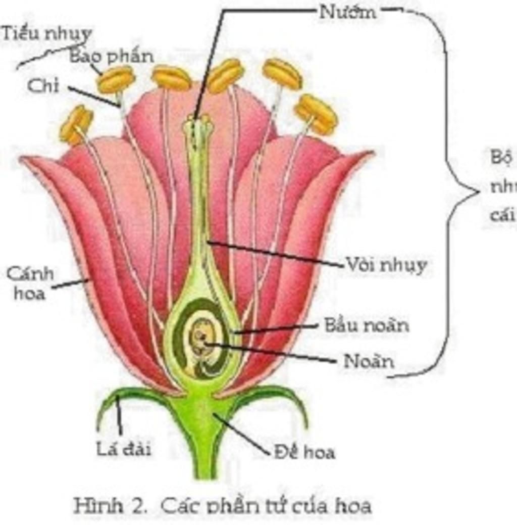 Nhụy hoa,nhị hoa,cánh hoa,trong nhụy có vòi nhị,có túi noãn,có noãn.