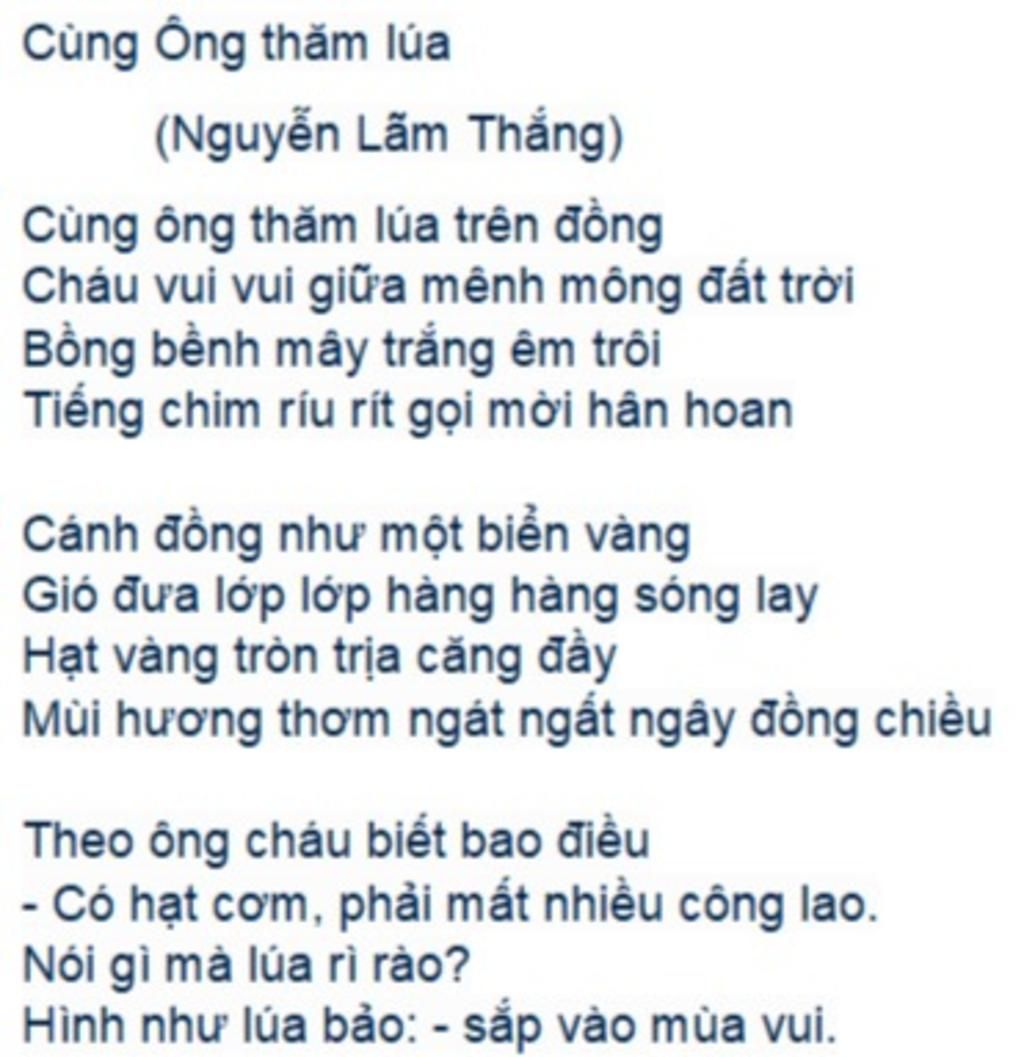 `-` Nội dung `:` Tình yêu thương của hai ông cháu dành cho nhau. Khung cảnh đồng quê tươi đẹp, hương thơm lúa chín khiến người cháu phấn khởi, thích thú khi cùng ông ra đồng và học được cùng ông biết bao điều.