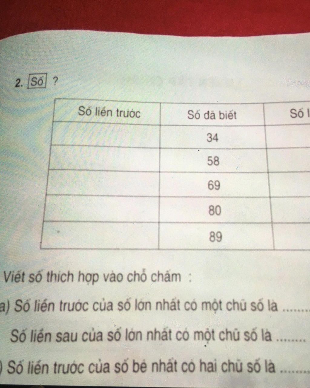 a) Số liền trước của số lớn nhất có một chữ số là: 8💟