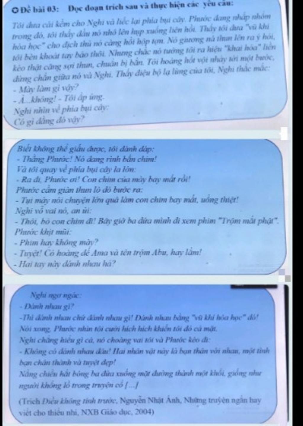 - kết thúc truyện : "nắng hắt bóng ba đứa xuống mặt đường thành một khối giống người khổng lồ trong truyện cổ " gợi cho em suy nghĩ về một tình bạn đẹp của ba nhân vật, lúc đầu tuy là kẻ thù nhưng về sau lại trở thành những người bạn tốt