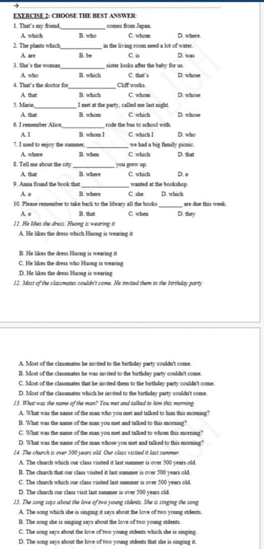EXERCISE 2: CHOOSE THE BEST ANSWER: