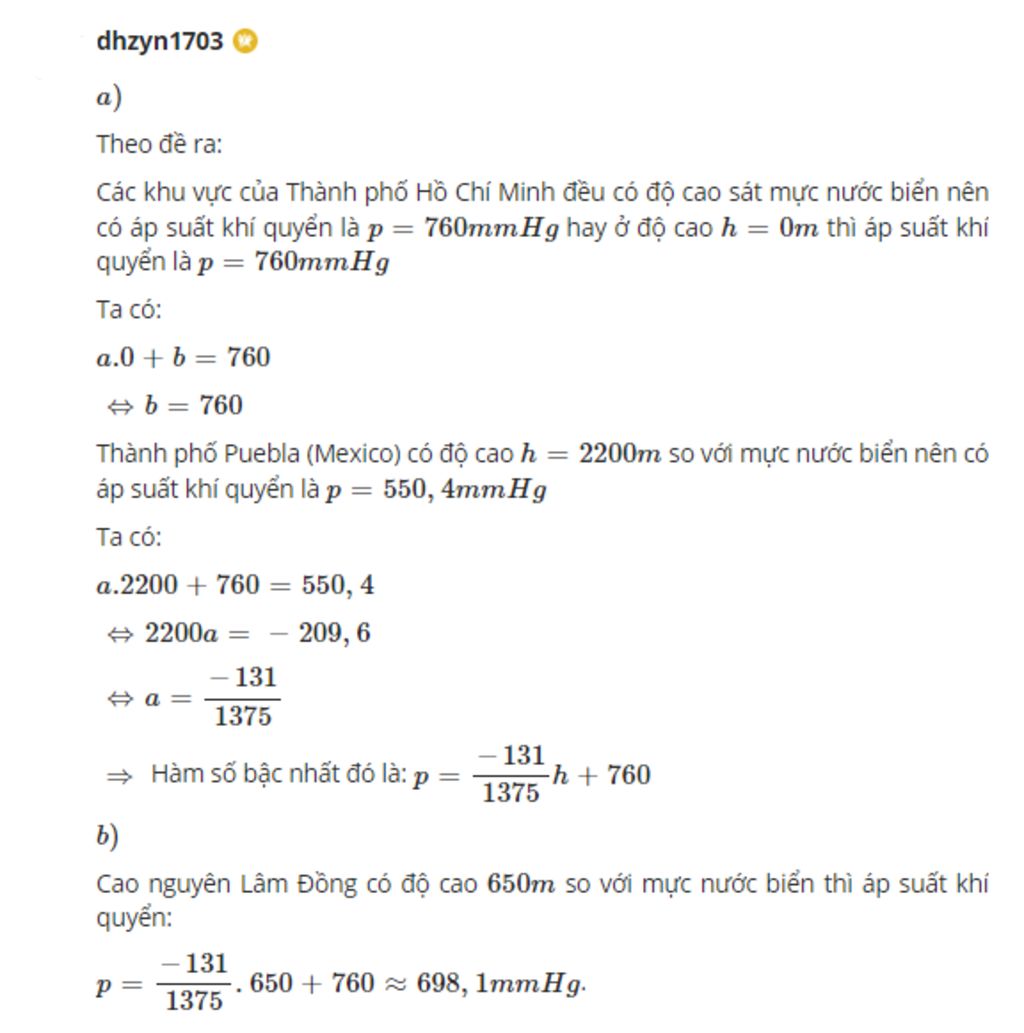 b) hỏi ở cao nguyên Lâm Đồng có độ cao 650m so với mực nước biển thì có áp suất khí quyển là bao nhiêu? ( làm tròn tới chữ số thập phân thứ nhất )