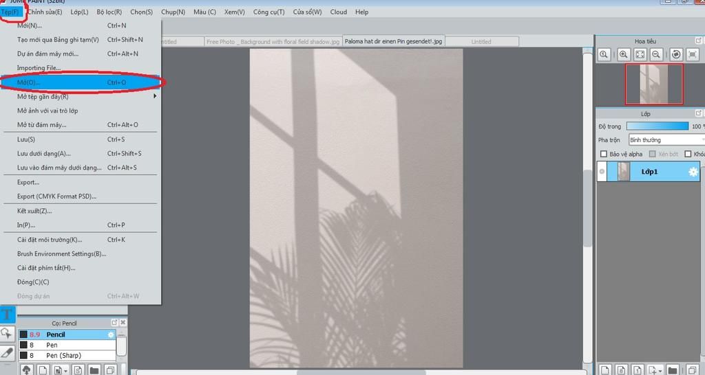 Bước 1 : Chọn Tệp ; ấn vào Mở để chọn ảnh có fiter bất kì ( píc 1 )