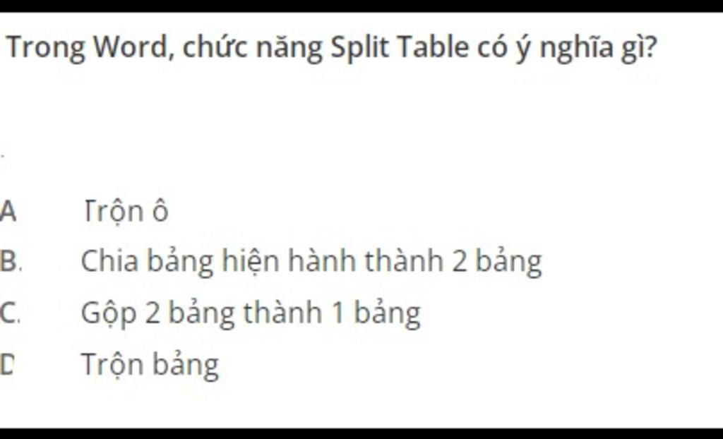 - Trong Word, Split Table tách 1 bảng thành 2 bảng