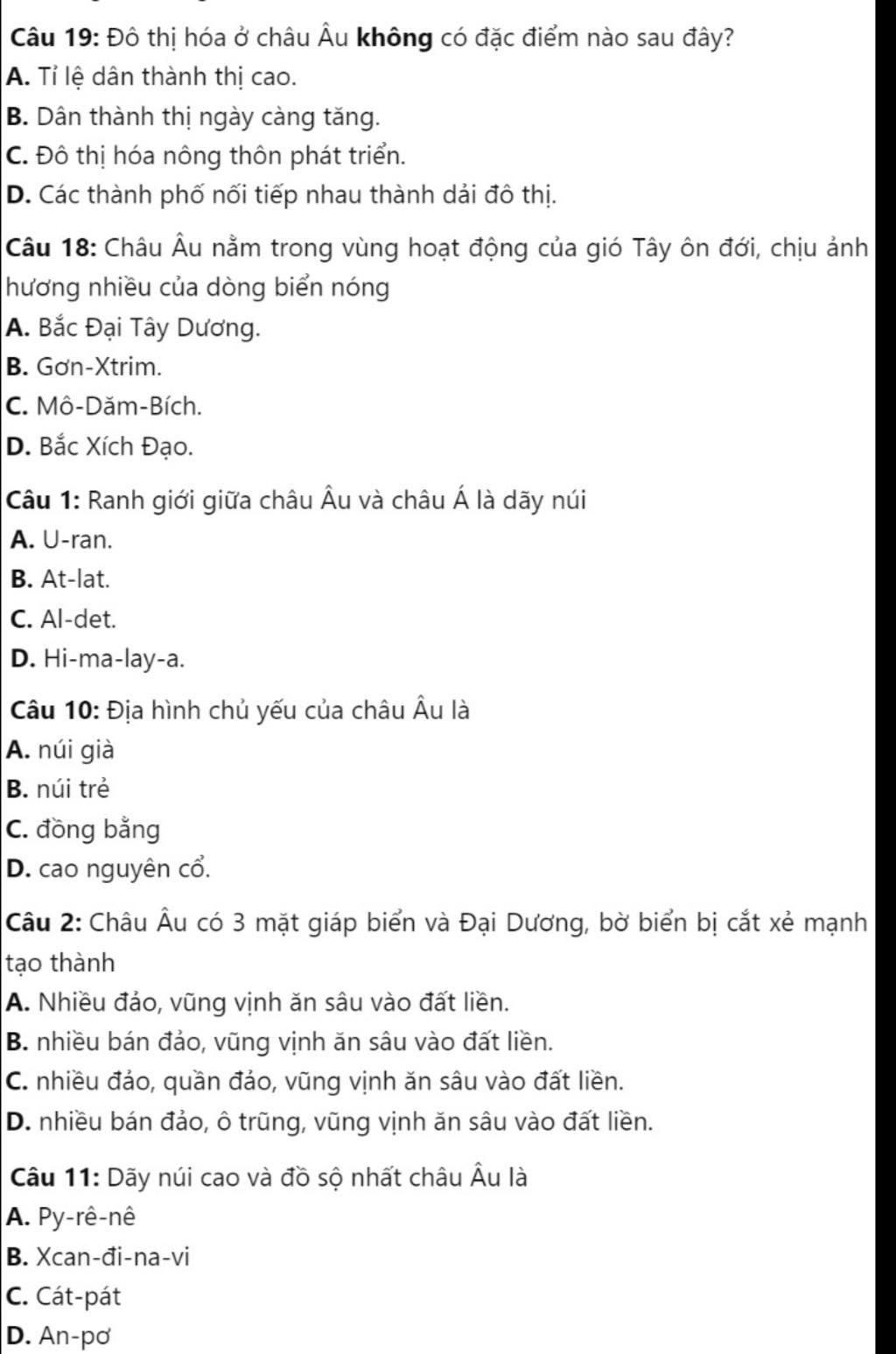 `-` Đô thị hoá ở Châu Âu không có đặc điểm `:`