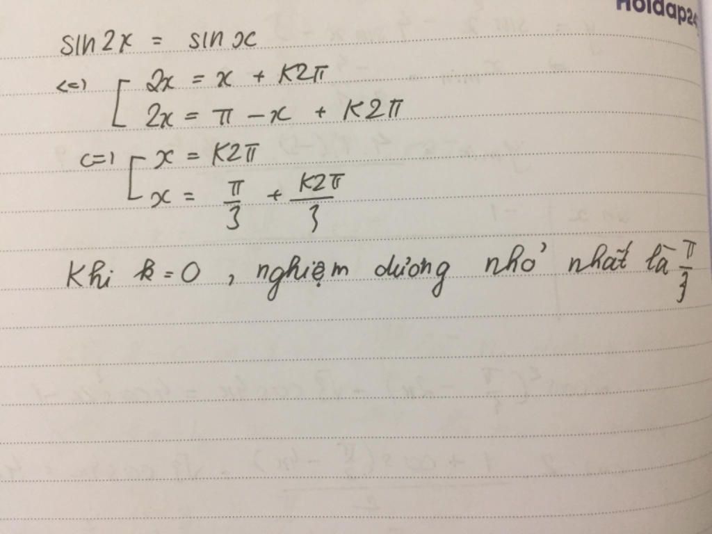 ⇒ nghiệm dương nhỏ nhất của phương trình là: $\frac{\pi}{3}$