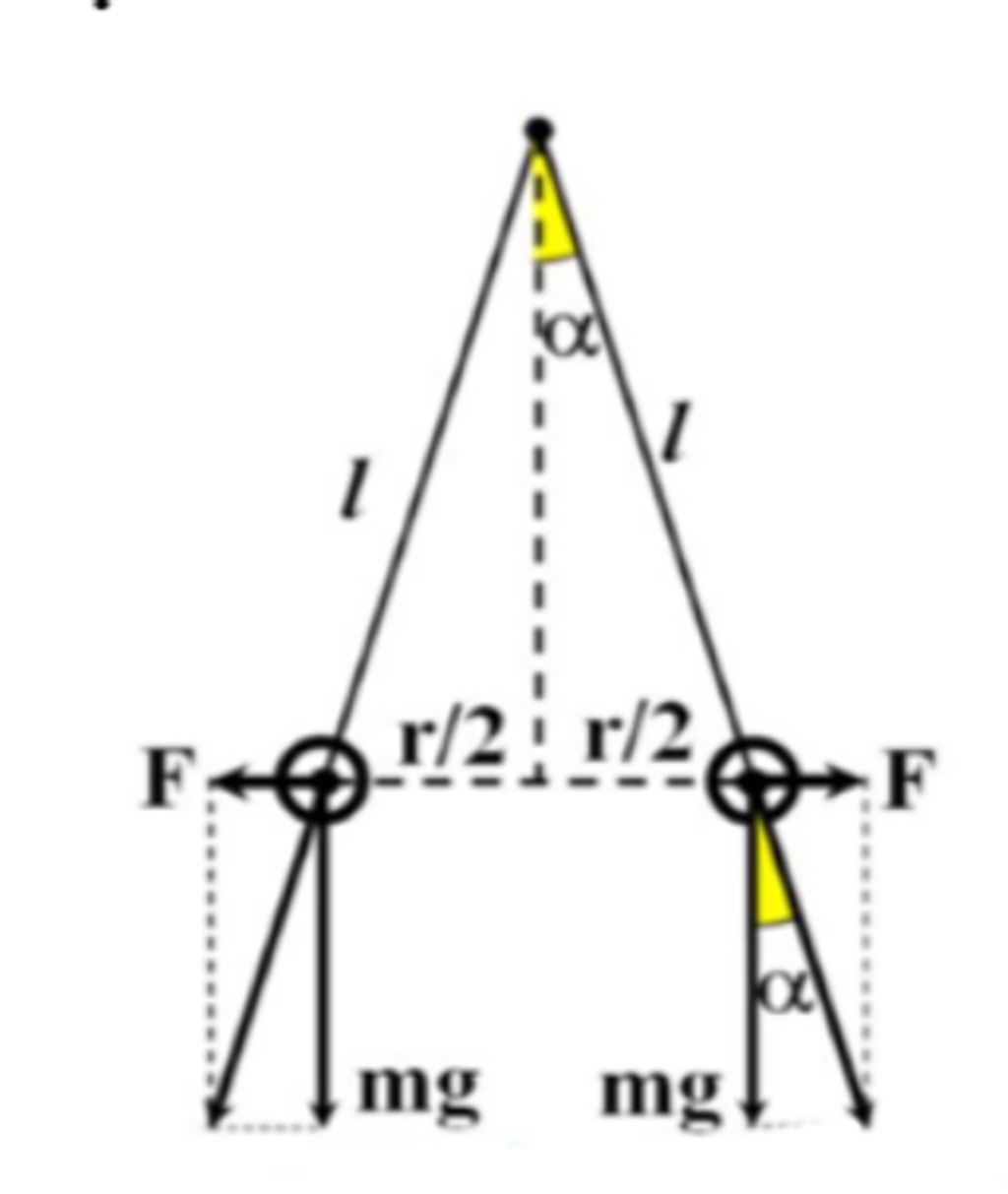 & \Leftrightarrow k.\dfrac{\left| {{q}^{2}} \right|}{{{r}^{2}}}=m.g.\tan \alpha \\