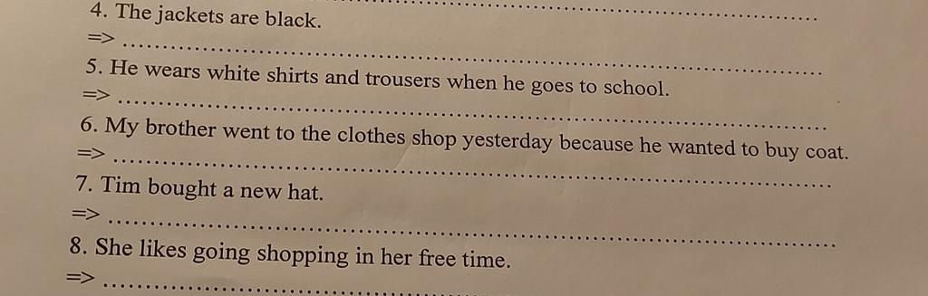 6. ( Vì bài này đang nói là anh zai tui đã đến cửa hàng quần áo vào hôm qua vì anh ấy muốn mua 1 cái áo khoác => cần hỏi tại sao anh zai bạn đã đến cửa hàng hôm qua ? )