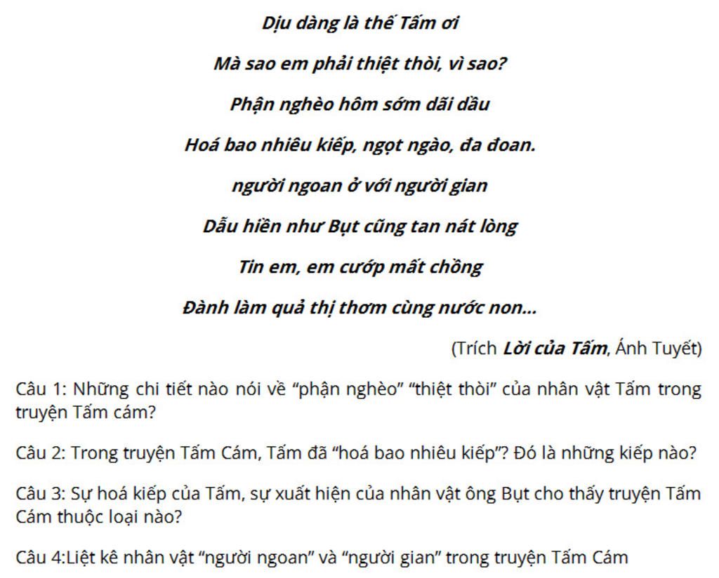 ⇒ Tấm hoá 4 kiếp : Vàng anh, xoan đào, tiếng chửi của khung cửi, quả thị.