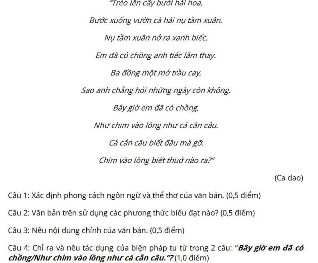 `-` Văn bản trên sử dụng các phương thức biểu đạt tự sự, biểu cảm, miêu tả.