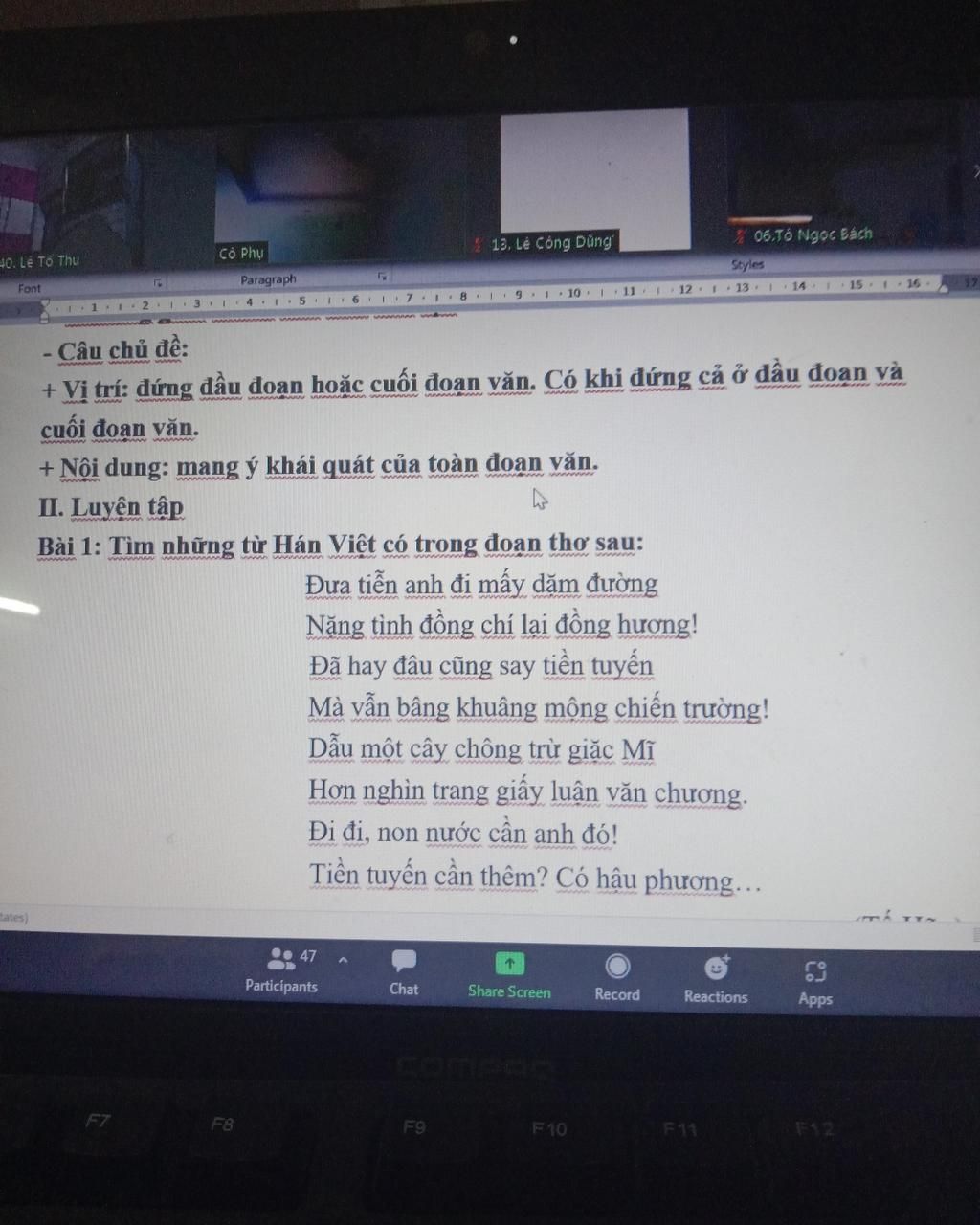 Những từ Hán Việt có trong đoạn trích là:
