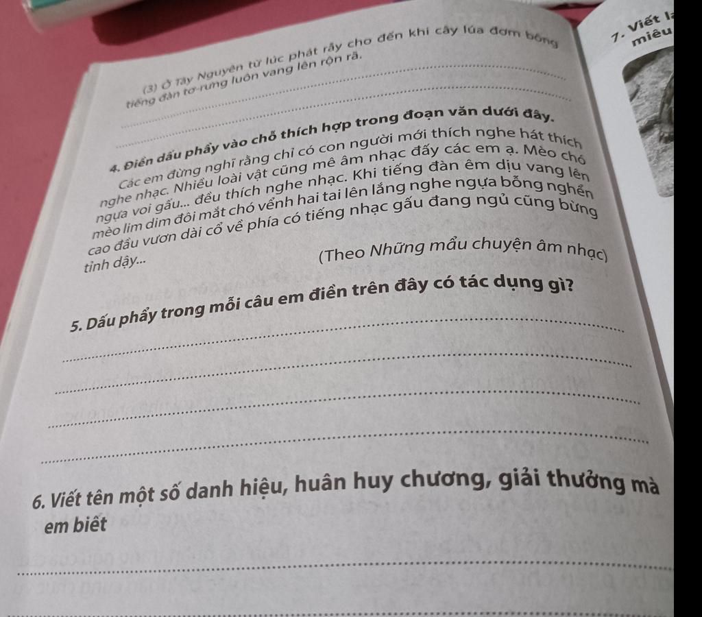 $-$ Các em đừng nghĩ rằng chỉ có con người mới thích nghe hát,thích nghe nhạc.Nhiều loài vật cũng mê âm nhạc đấy chứ các em ạ. Chó,mèo,ngựa,voi,gấu...đều thích nghe nhạc