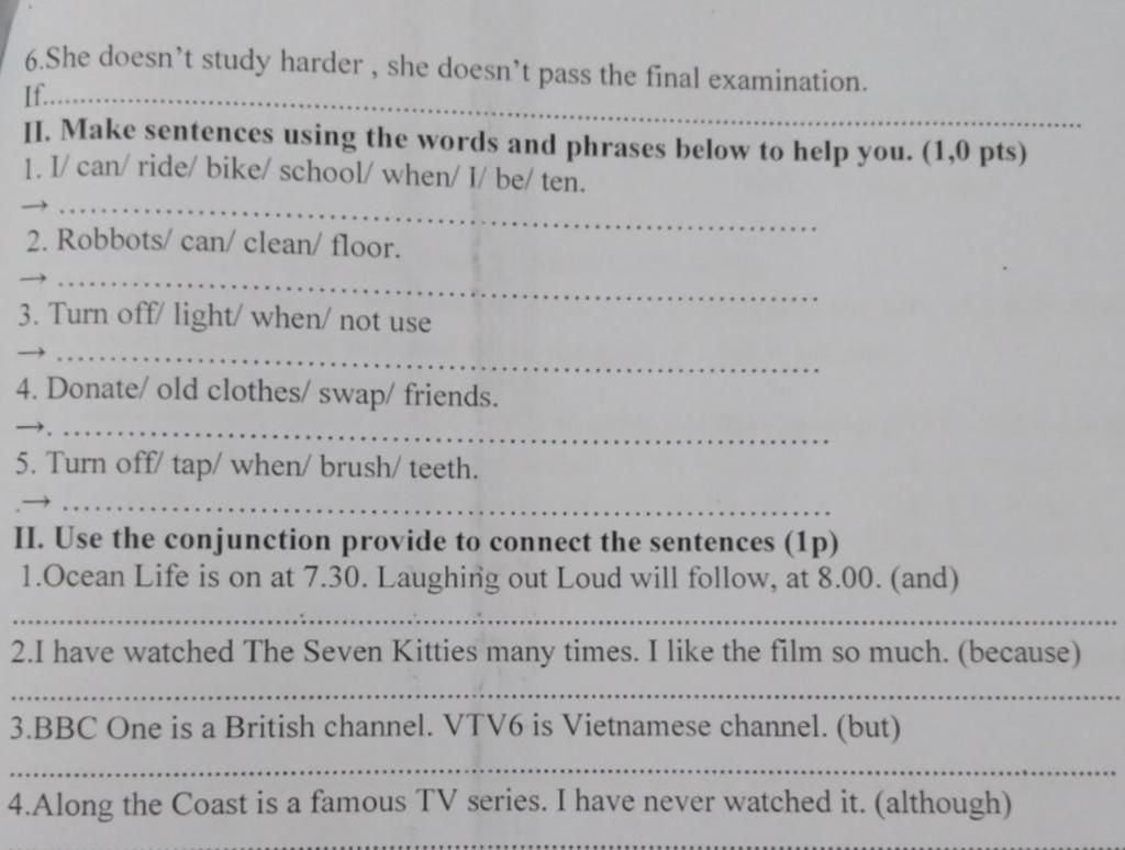 II. Make sentences using the words and phrases below to help you. (1,0 pts)