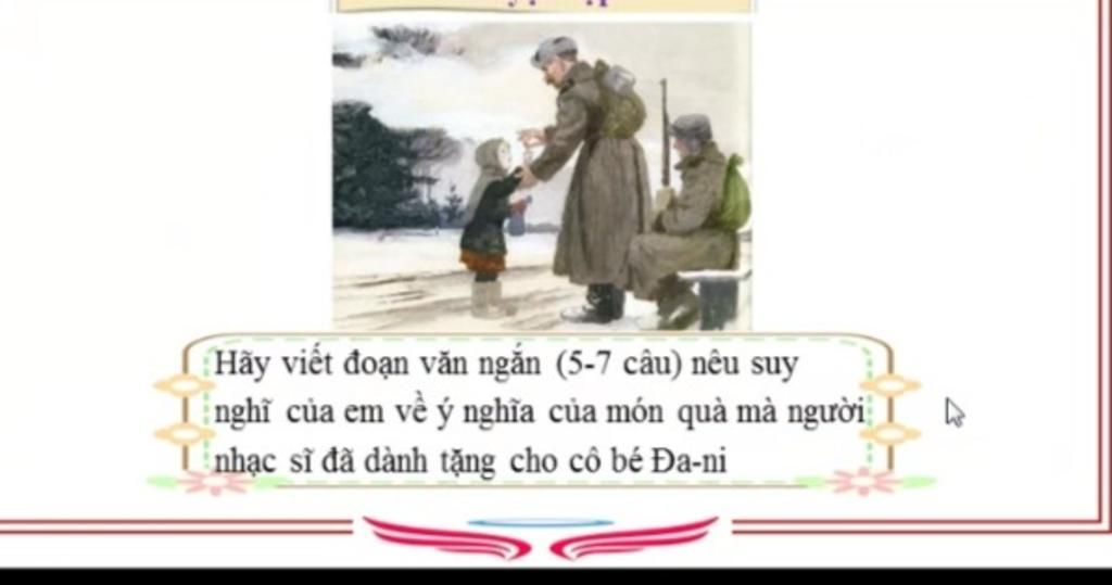 Đa-ni đã khóc khi biết khúc nhạc nổi tiếng là món quà nhạc sĩ E-đơ-va Gờ-ríc viết tặng cô. Đó là những giọt nước mắt cảm động trước lời hứa của người soạn nhạc sau nhiều năm và giai điệu đó đang nói về cô của hiện tại cùng với sự biết ơn. Món quà mà người nhạc sĩ tặng cho cô bé có ý nghĩa vô cùng to lớn vì nó giúp cô bé thêm yêu cuộc sống này hơn và cảm nhận cuộc sống này vô cùng tươi đẹp như bản nhạc ông viết tặng cho cô bé. Từ câu chuyện về món quà mà Đa-ni nhận được, em có suy nghĩ rằng vẻ đẹp của món quà không nằm ở giá trị vật chất mà nằm ở cách mà người ta cho tặng nó và cách người nhận đón chào món quà đó. Bởi vậy mỗi chúng ta cần ứng xử sao cho hợp lý khi cho đi và nhận lại trong cuộc sống.