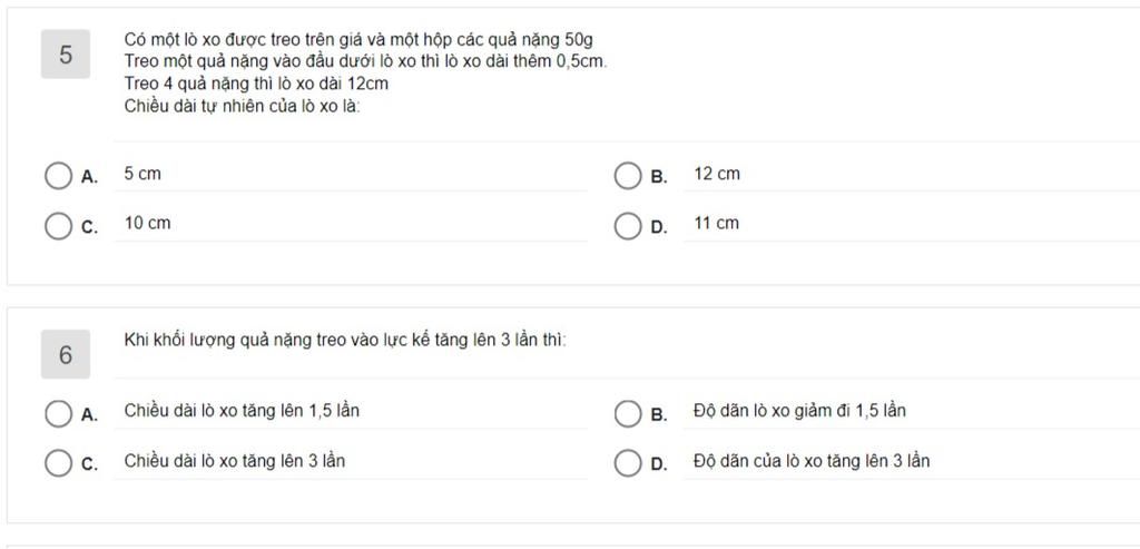 Khi treo 4 quả nặng vào lò xo thì lò xo dài ra thêm: