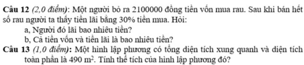 `12. a) 630000` đồng ; `b) 2730000` đồng