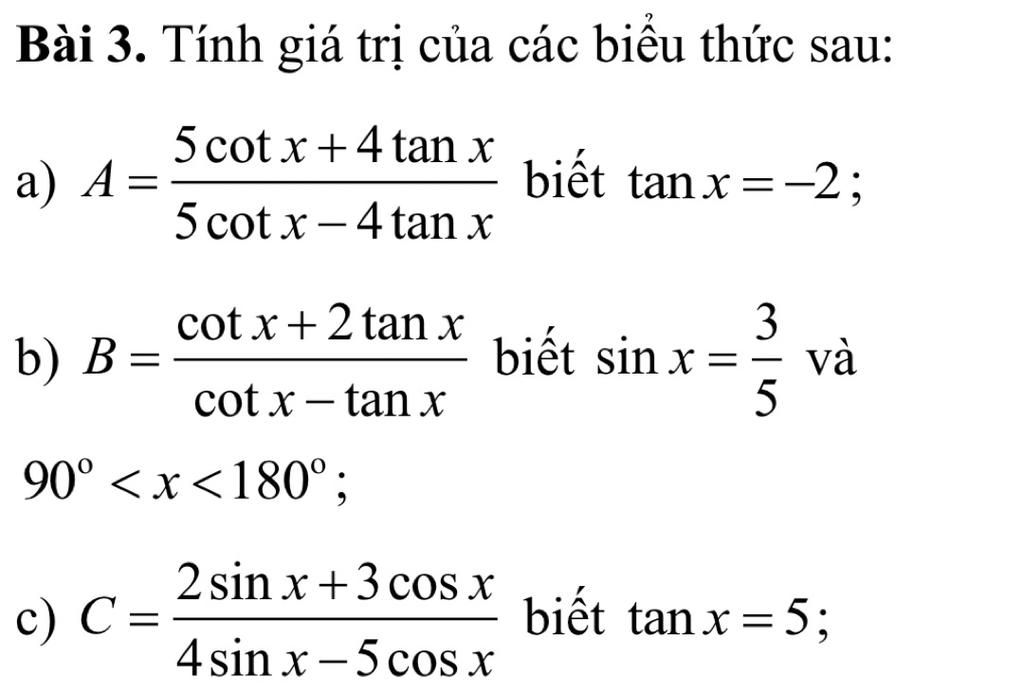 Bài 3. Tính giá trị của các biểu thức sau:
