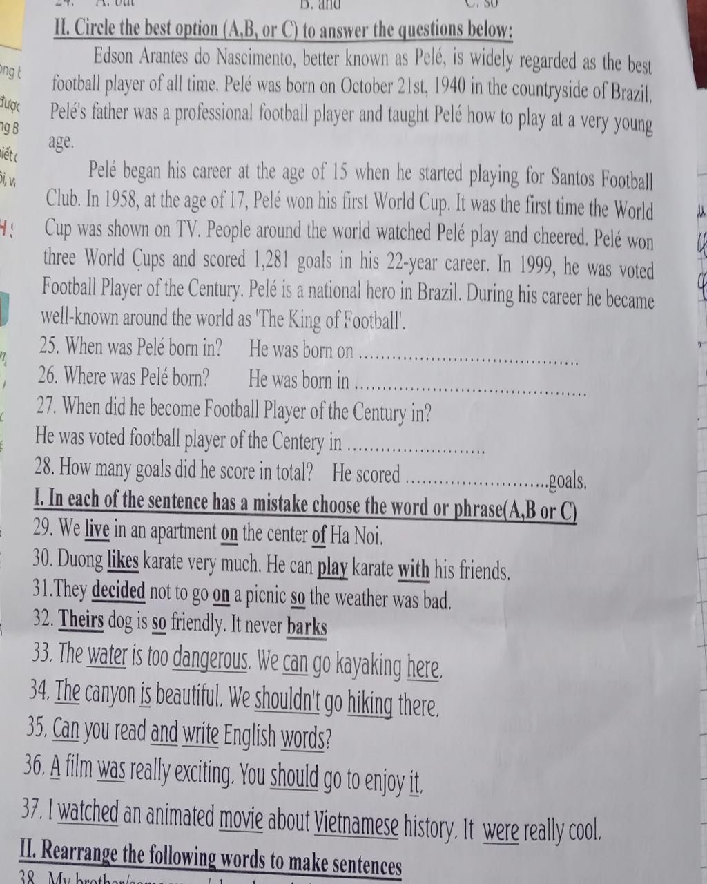II. Circle the best option (A,B, or C) to answer the questions below: