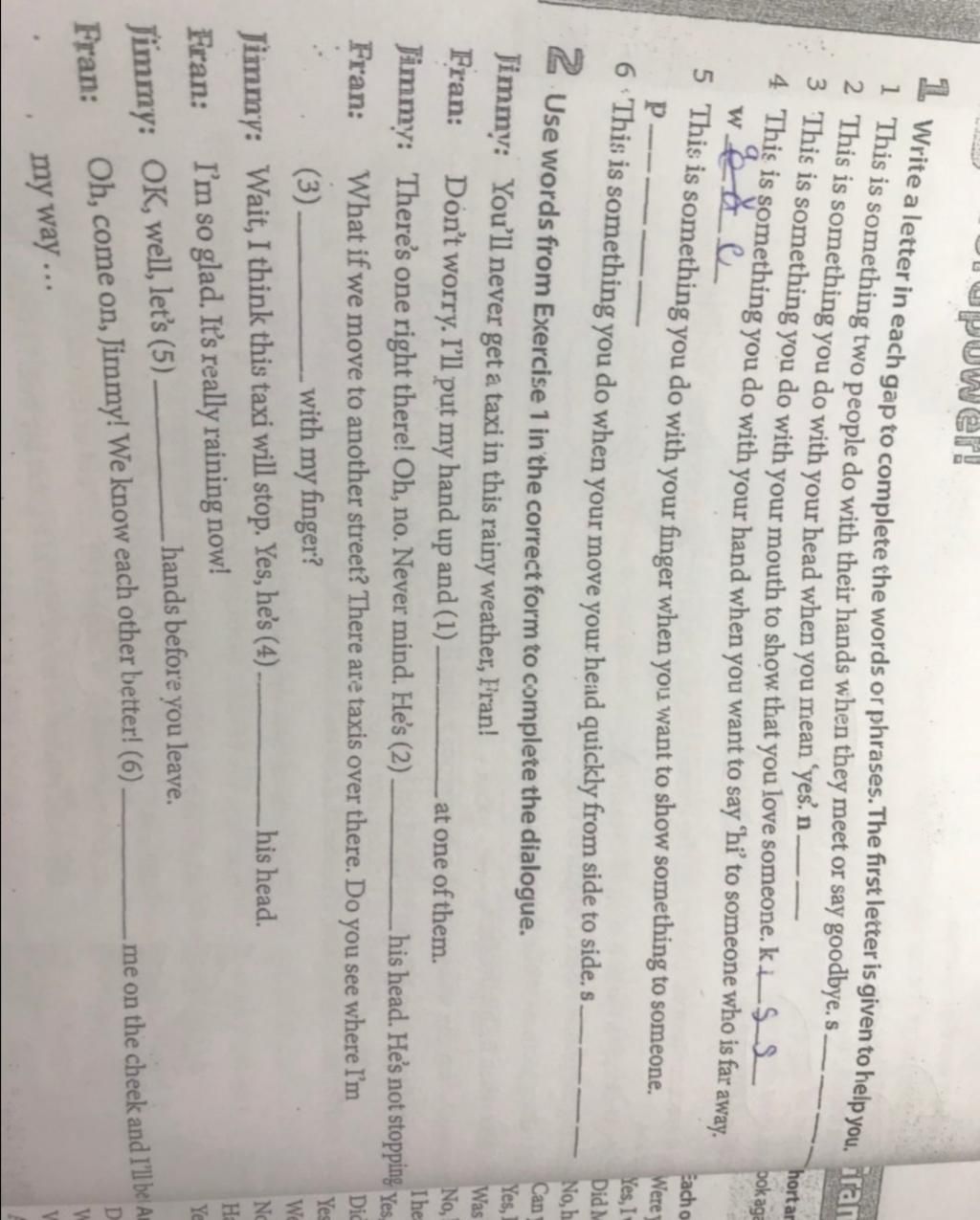 - write a letter in each gap to complete the words or phrases. The first letter is given to help you. ran