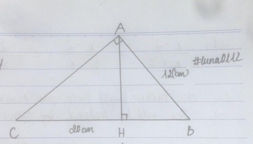 ⇒ $HB^{}$ = $\frac{AB.AB}{BC}$ = $\frac{12.12}{20}$ = $7,2(cm)^{}$