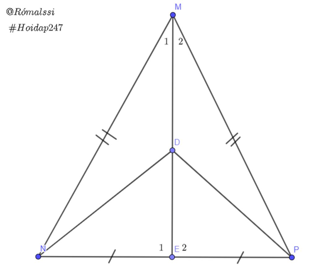 `MN=MP` (Vì `\DeltaMNP` cân tại `M`)