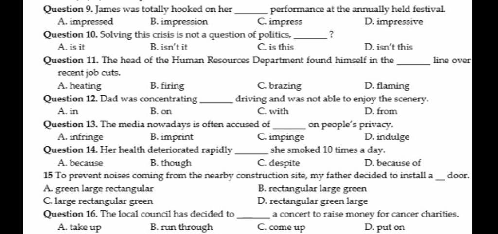 12. B concentrate on: tập trung vào