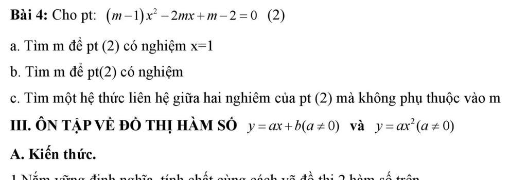 Vậy không tìm được `m` để phương trình `(2)` có nghiệm `x=1`