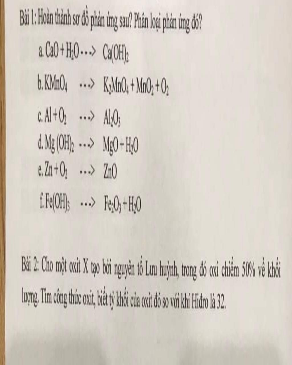 $e)2Zn+O_2\xrightarrow{t^o}2ZnO$ (phản ứng hóa hợp)