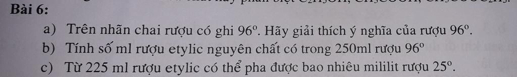 c ) trong 240 ml rượu có 250 ml rượu 96 độ nguyên chất