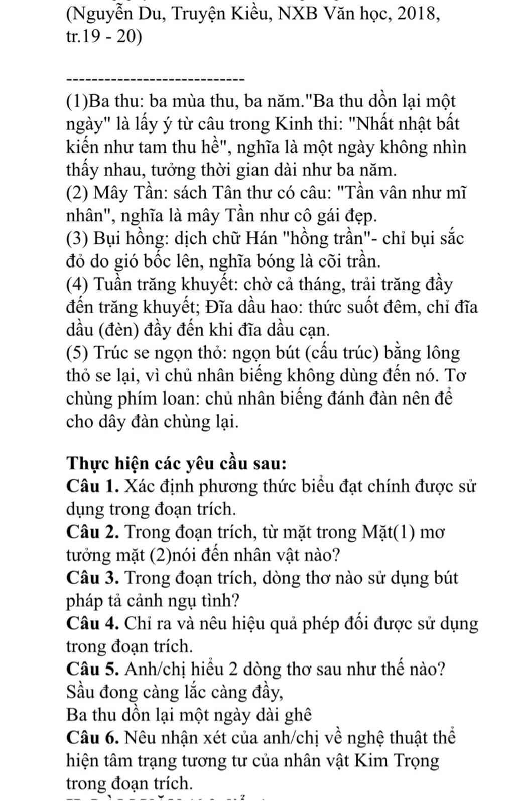 (1)Ba thu: ba mùa thu, ba năm."Ba thu dồn lại một
