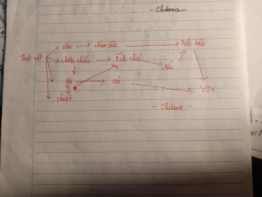 thực vật $\longrightarrow$sâu$\longrightarrow$chim sâu$\longrightarrow$diều hâu$\longrightarrow$Vi sinh vật (VSV)