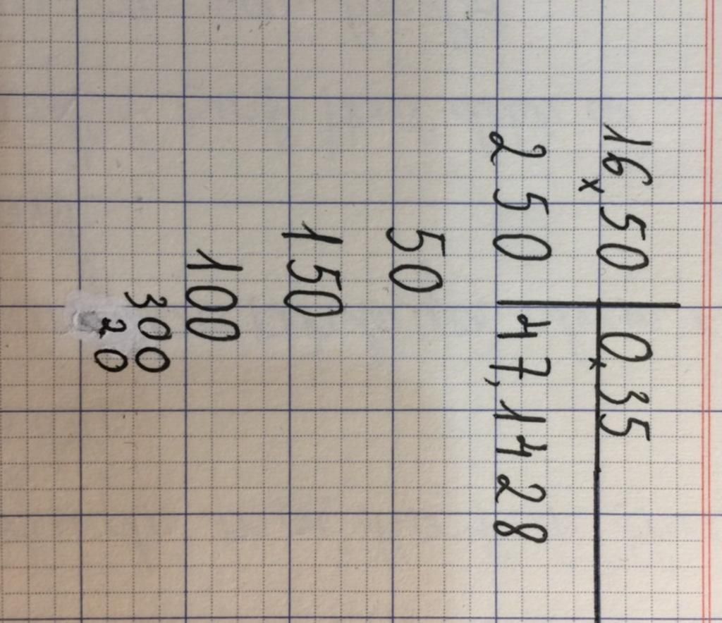 `16,5 : 0,35` đổi thành `1650 : 35`