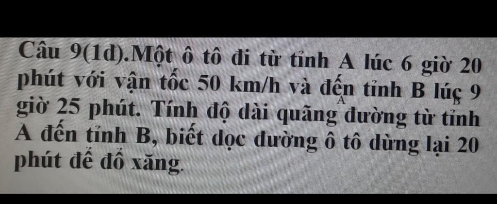9 giờ 25 phút - 6 giờ 20 phút - 20 phút = 2 giờ 45 phút = 2.75 giờ