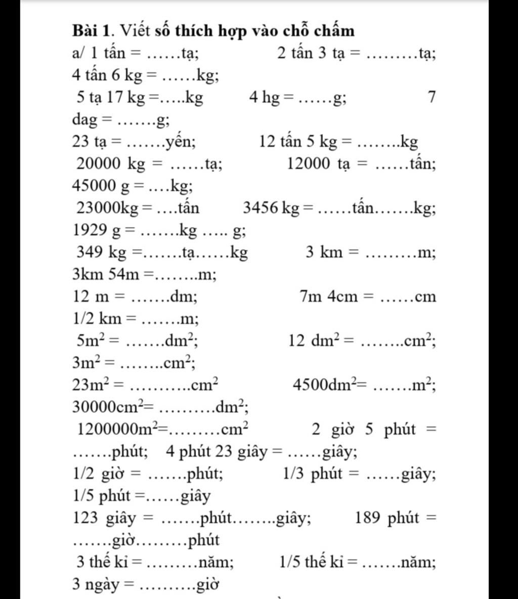 7 dag = 70 g 12000 tạ = 1200 tấn