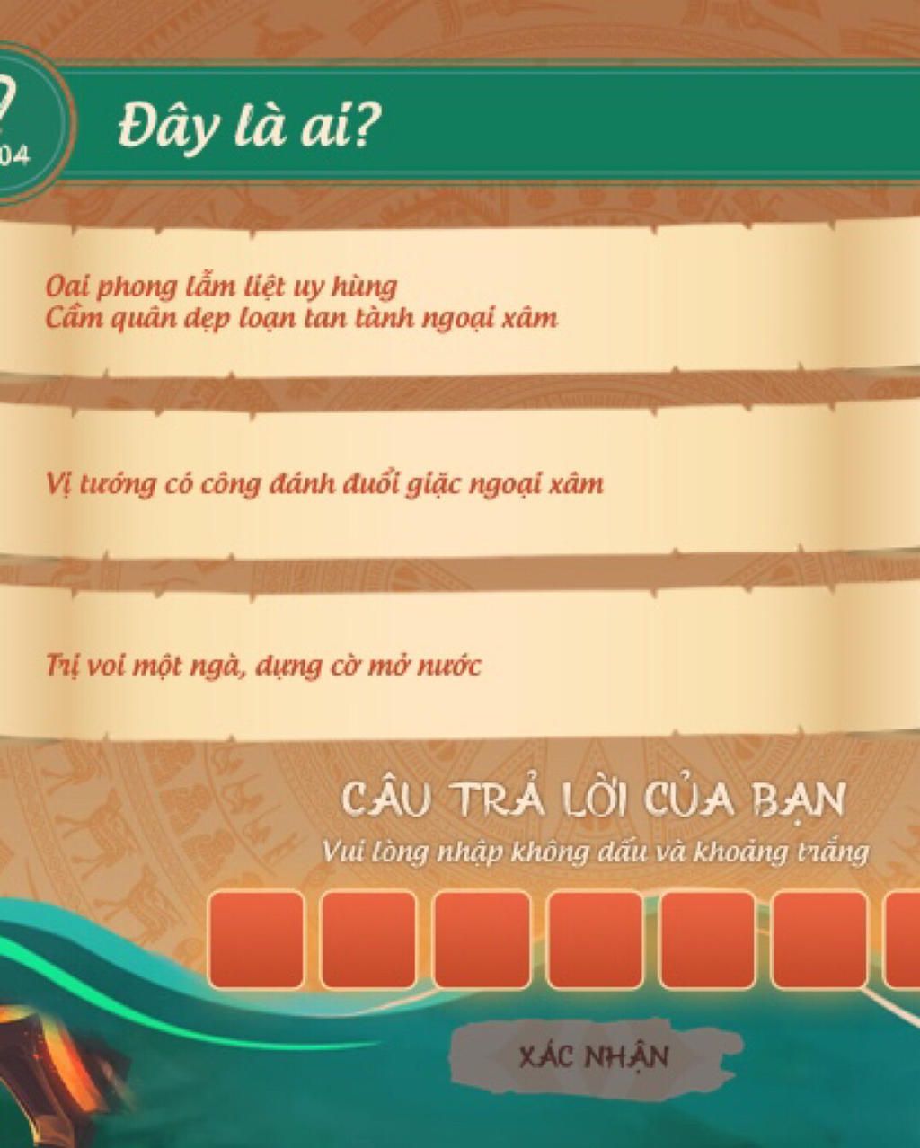 - Từ ''Bà Triệu'' có 7 chữ hợp với số ô câu trả lời