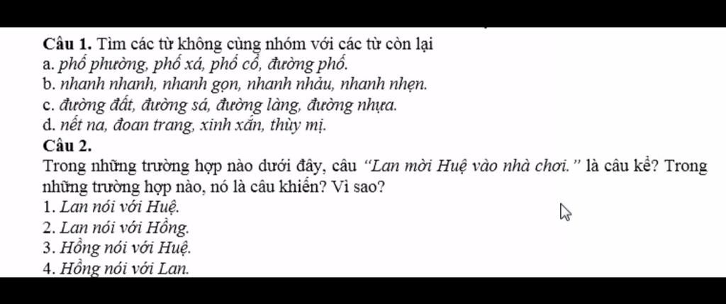 a) "Phố cổ" là từ không cùng nhóm với 3 từ còn lại.
