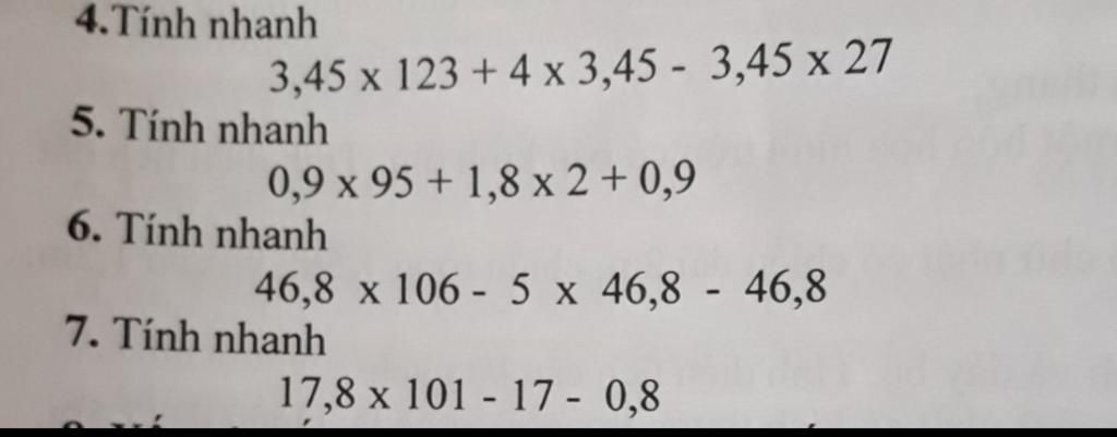 4) 3,45 × 123 + 4 × 3,45 − 3,45 × 27