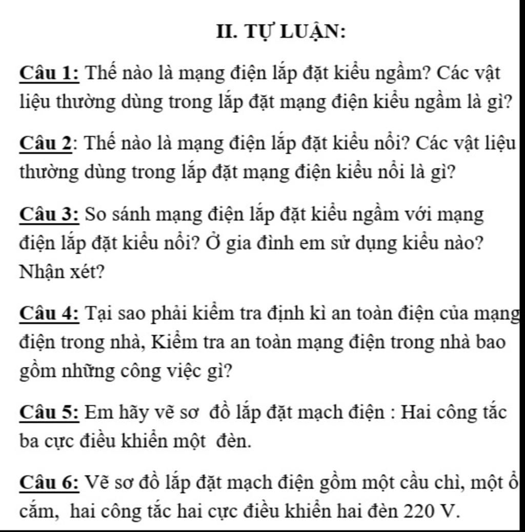 Câu 3: So sánh mạng điện lắp đặt kiểu ngầm với mạ ...
