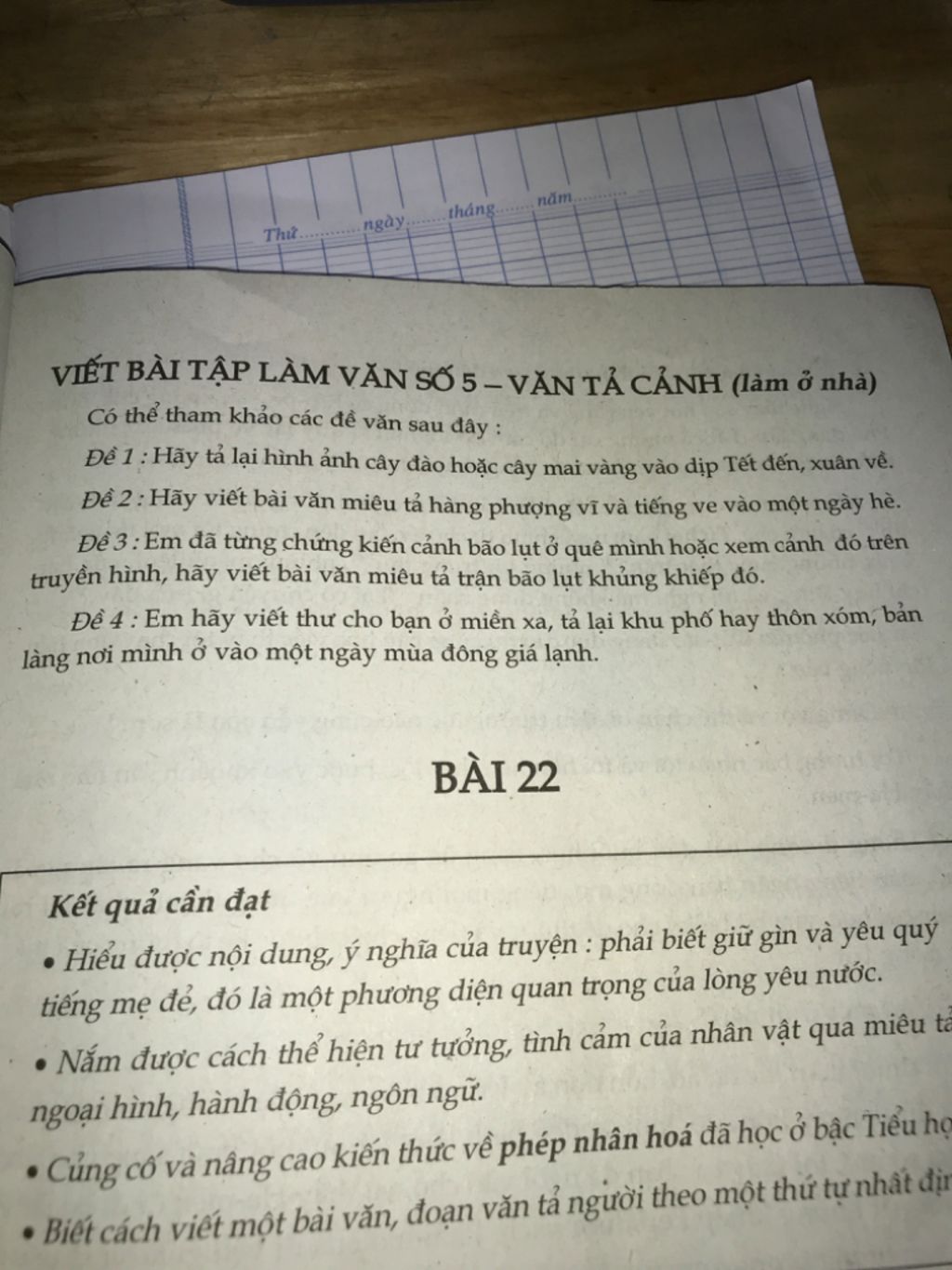 VIẾT BÀI TẬP LÀM VĂN SỐ 5 – VĂN TẢ CẢNH (làm ở nhà)