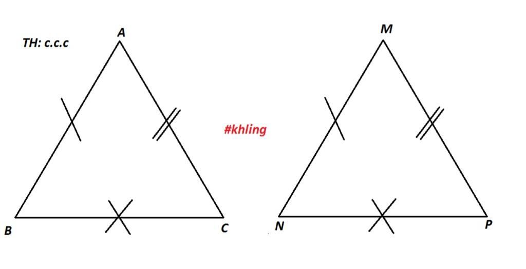`-` Trường hợp `1:` cạnh – cạnh – cạnh: Nếu ba cạnh của tam giác này bằng ba cạnh của tam giác kia thì hai tam giác đó bằng nhau. VD: Hình vẽ `1`