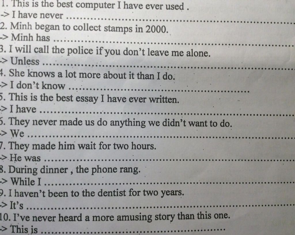 9. It's been two years since I have been to the dentist. (Cấu trúc: It's been time since sb V)