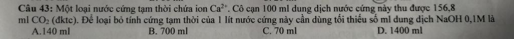 \({n_{C{a^{2 + }}}} = \frac{1}{2}{n_{HC{O_3}^ - }} = 0,07 = {n_{C{O_3}^{2 - }}}\)