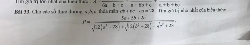 Từ `(1);(2);(3)` `->sqrt(12(a^2+28))+sqrt(12(b^2+28))+sqrt(c^2+28)`