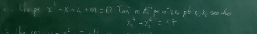 $x_1^4+x_2^4=17\\ \Leftrightarrow \left(x_1^2+x_2^2\right)^2-2x_1^2x_2^2=17\\ \Leftrightarrow \left[\left(x_1+x_2\right)^2-2x_1x_2\right]^2-2\left(x_1x_2\right)^2-17=0\\ \Leftrightarrow \left[1^2-2\left(m+4\right)\right]^2-2\left(m+4\right)^2-17=0\\ \Leftrightarrow \left(1-2m-8\right)^2-2\left(m^2+8m+16\right)-17=0\\ \Leftrightarrow \left(-2m-7\right)^2-2m^2-16m-32-17=0\\ \Leftrightarrow 4m^2+28m+49-2m^2-16m-49=0\\ \Leftrightarrow 2m^2+12m=0\\ \Leftrightarrow 2m\left(m+6\right)=0$