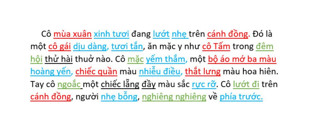 $\text{danh từ:cánh đồng,chiếc quần,thắt lưng,mùa xuân.}$
