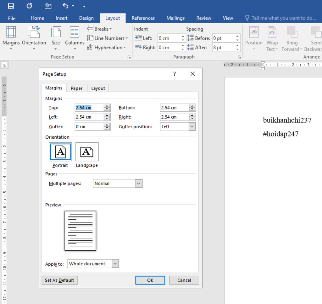 D. Page Layout ->Paragraph -> Margins -> Normal.