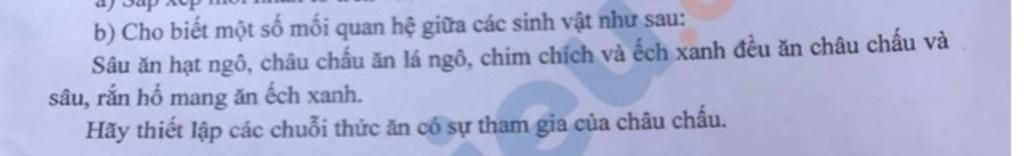 Ngô -> sâu -> ếch xanh -> rắn hổ mang-> VSV