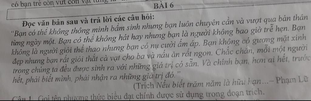 Câu 1: Phương thức biểu đạt chính: Nghị luận
