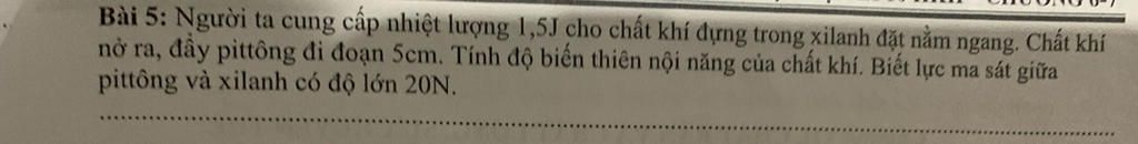 ΔU = Q – Fl = 1,5 – 20.0,05 = 0,5 J