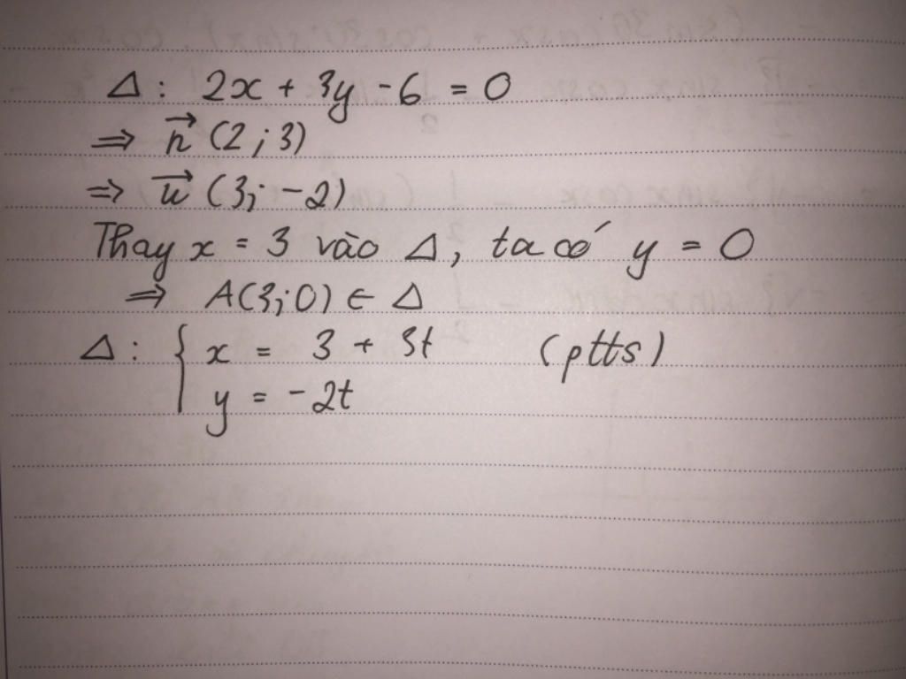 $x=3t\to 2.3t+3y-6=0\to y=-2t+2$